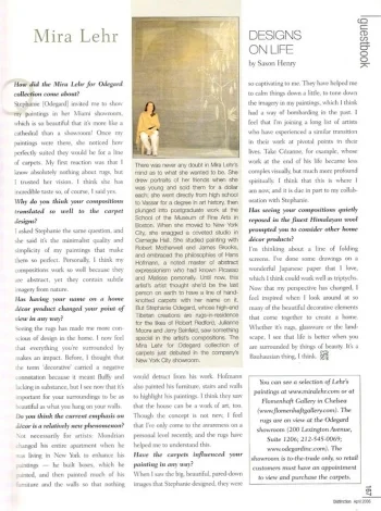 Saxon Henry interviews Mira Lehr in this issue of Distinction Magazine, Long Island. Lehr speaks about her collaboration with Stephanie Odegard. See below for full spread.