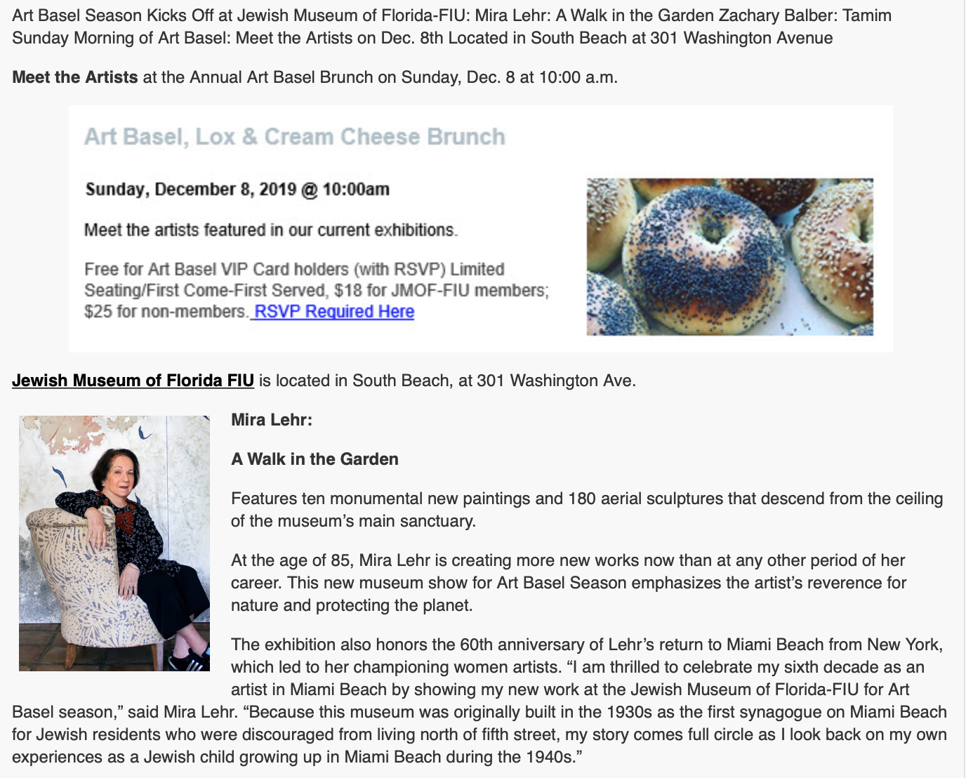 Today, sixty years later, Mira Lehr is recognized as "the Godmother of the entire Miami art scene."