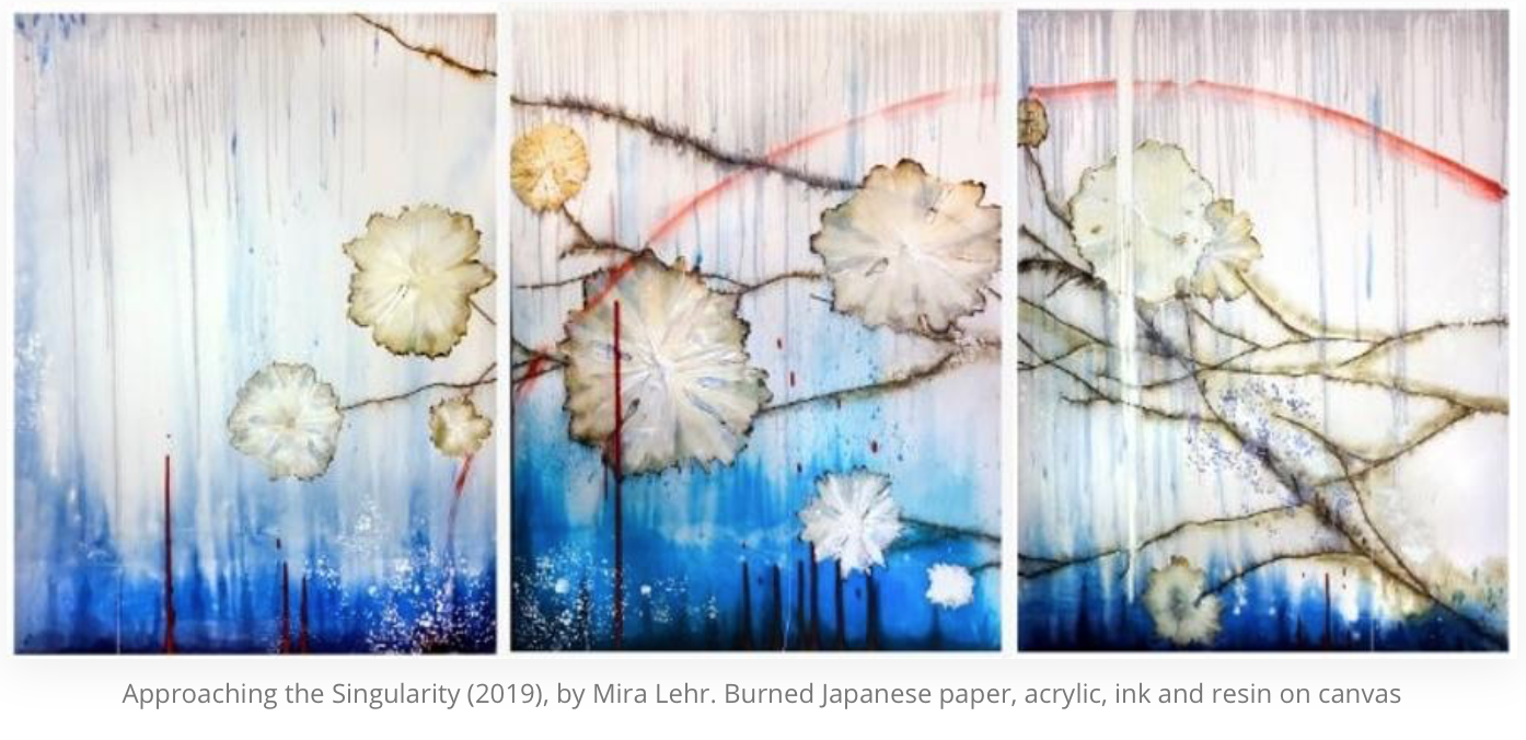 Visitors will feel like they are walking inside the root systems. Lehr’s nature-based work encompasses painting, sculpture and video installations. She uses nontraditional media such as gunpowder, fire, Japanese paper, dyes and welded steel, and she ignites and explodes fuses to create lines of fire across her paintings.
